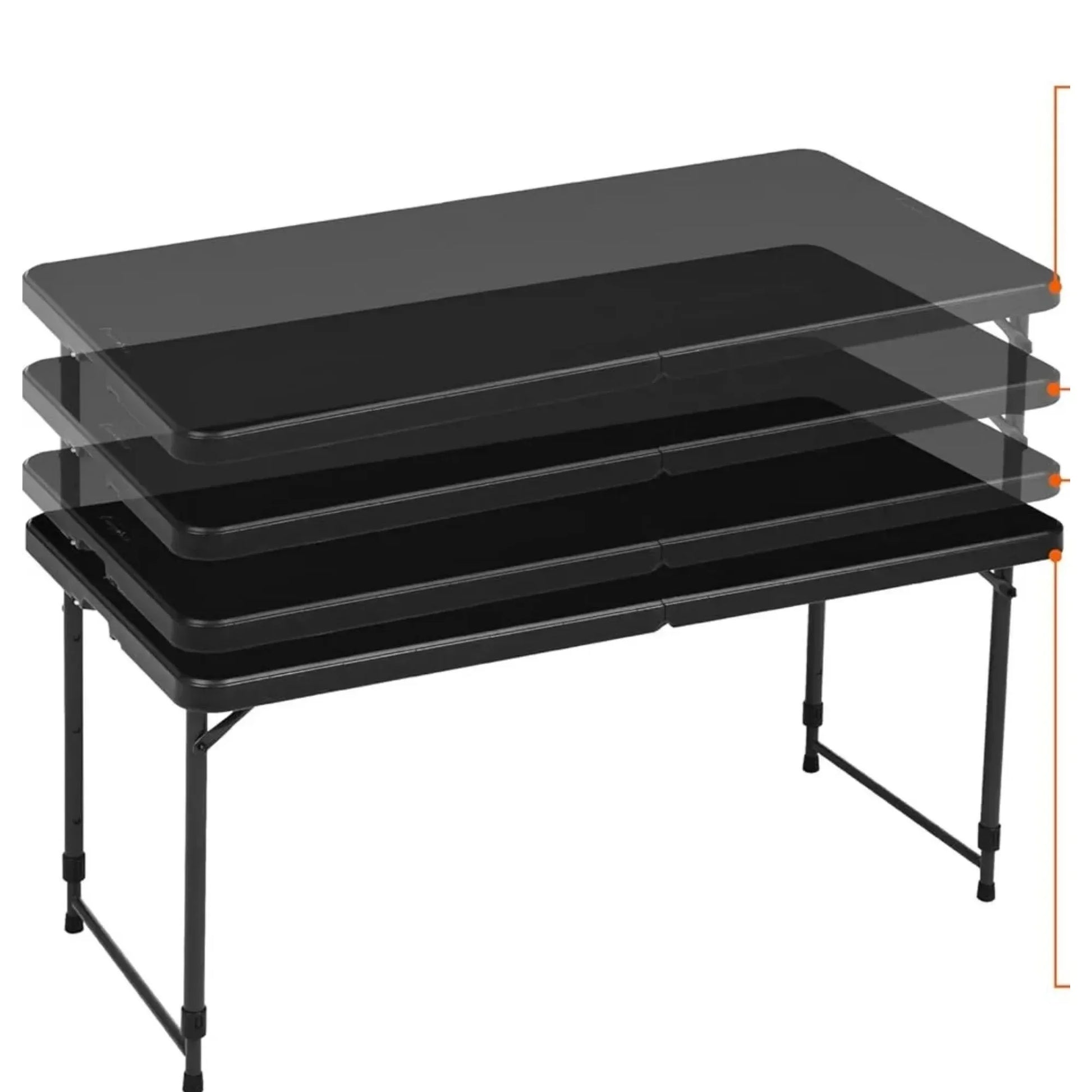 4 Foot Adjustable Height Folding Plastic Table, Black