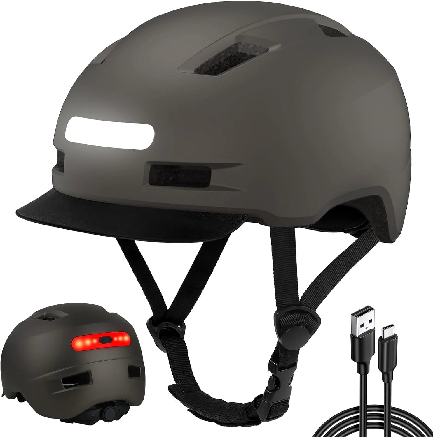 Fahrradhelm mit Licht: Unser Fahrradhelm für Damen und Herren mit Rücklicht in 5 Modi: Dauerlicht, Blinken, weiches Blinken, Dauerblinken, schwimmendes Blinken. Halten Sie die Taste 3 Sekunden lang gedrückt, um das Licht ein- oder auszuschalten. Auch mit Frontbeleuchtung für eine komfortable Beleuchtung. Jeder Fahrradhelm wird mit einem USB-Ladekabel geliefert.