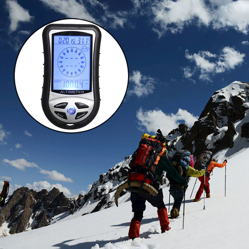 8-in-1 Handheld Digital Altimeter Compass Thermometer Backlight Outdoor Camping Travel Altimeter Barometer