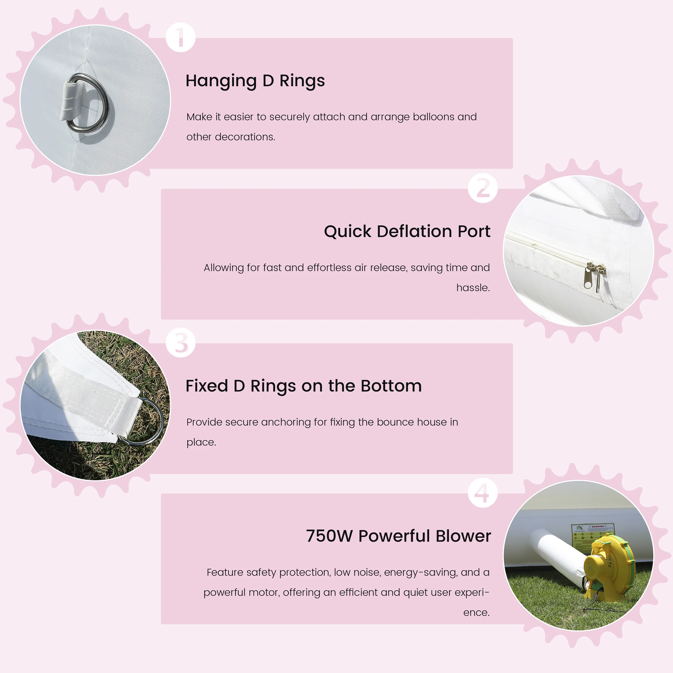 DIVERSE DECORATION: The design of the D-ring makes it easy to install balloons and decorations. You can use your imagination to decorate this White Bounce House as you want.