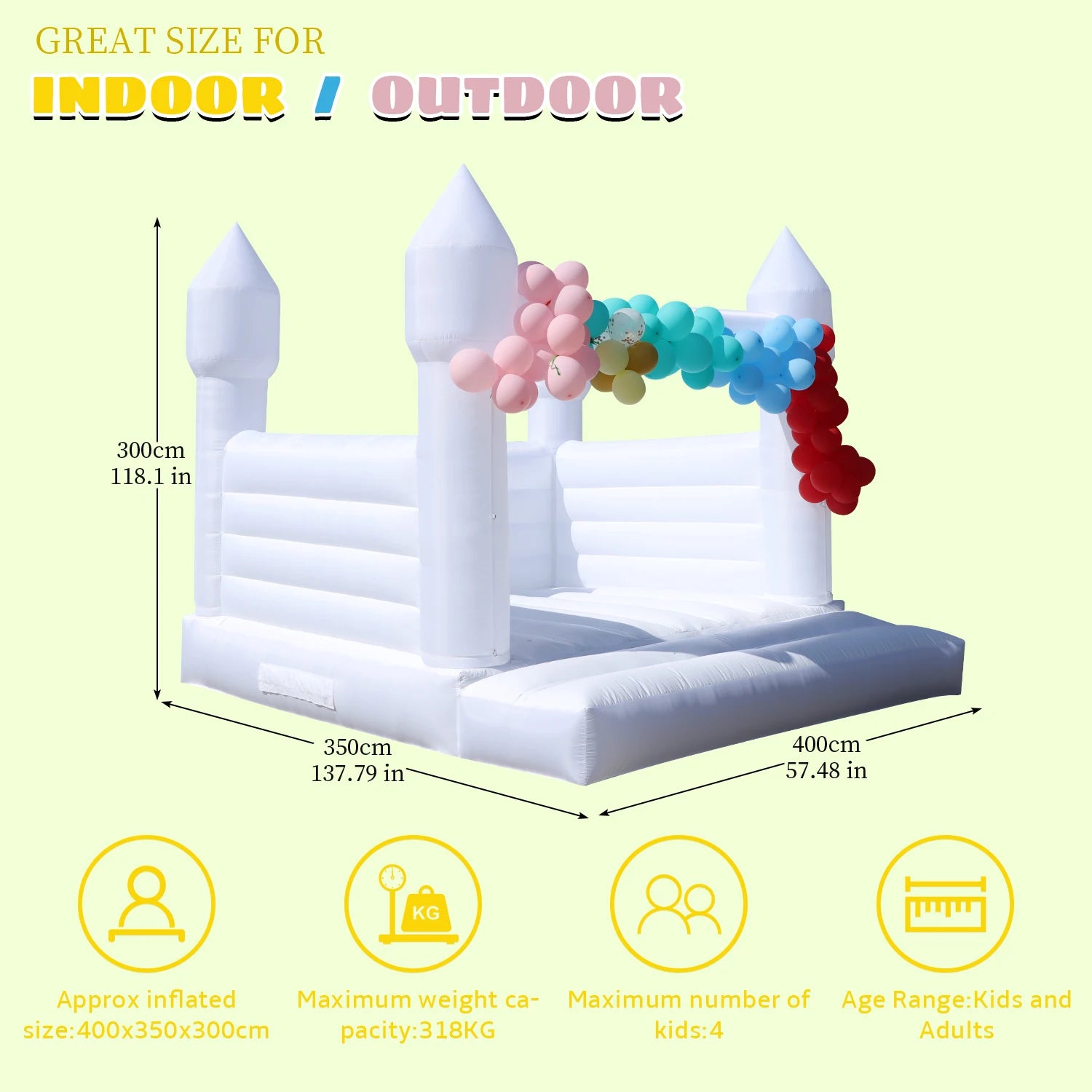 OUTSTANDING DESIGN: White Bounce House:13.5ft*11.5ft*10ft, large size provides more space to accommodate more people.