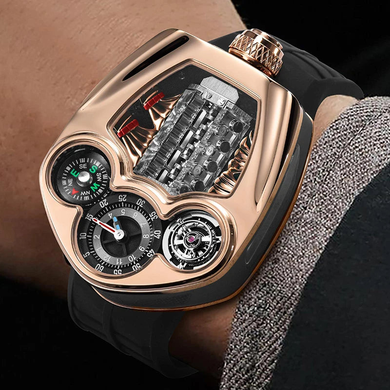 Pindu Design Mens Quartz Wristwatch With Silicone Strap Large Dial Compass