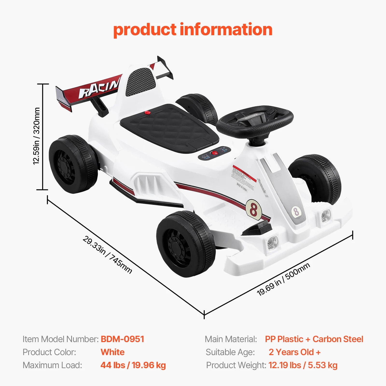 Stable Support, Secure Riding: Our electric go kart adopts wide four wheels design with high-quality carbon steel frame for stable support and avoiding rollover. It can ensure stability and security during the riding process whether it is fast turning or uneven road surfaces. Designed for children under 1.1 m in height and weight no more than 44 lbs.