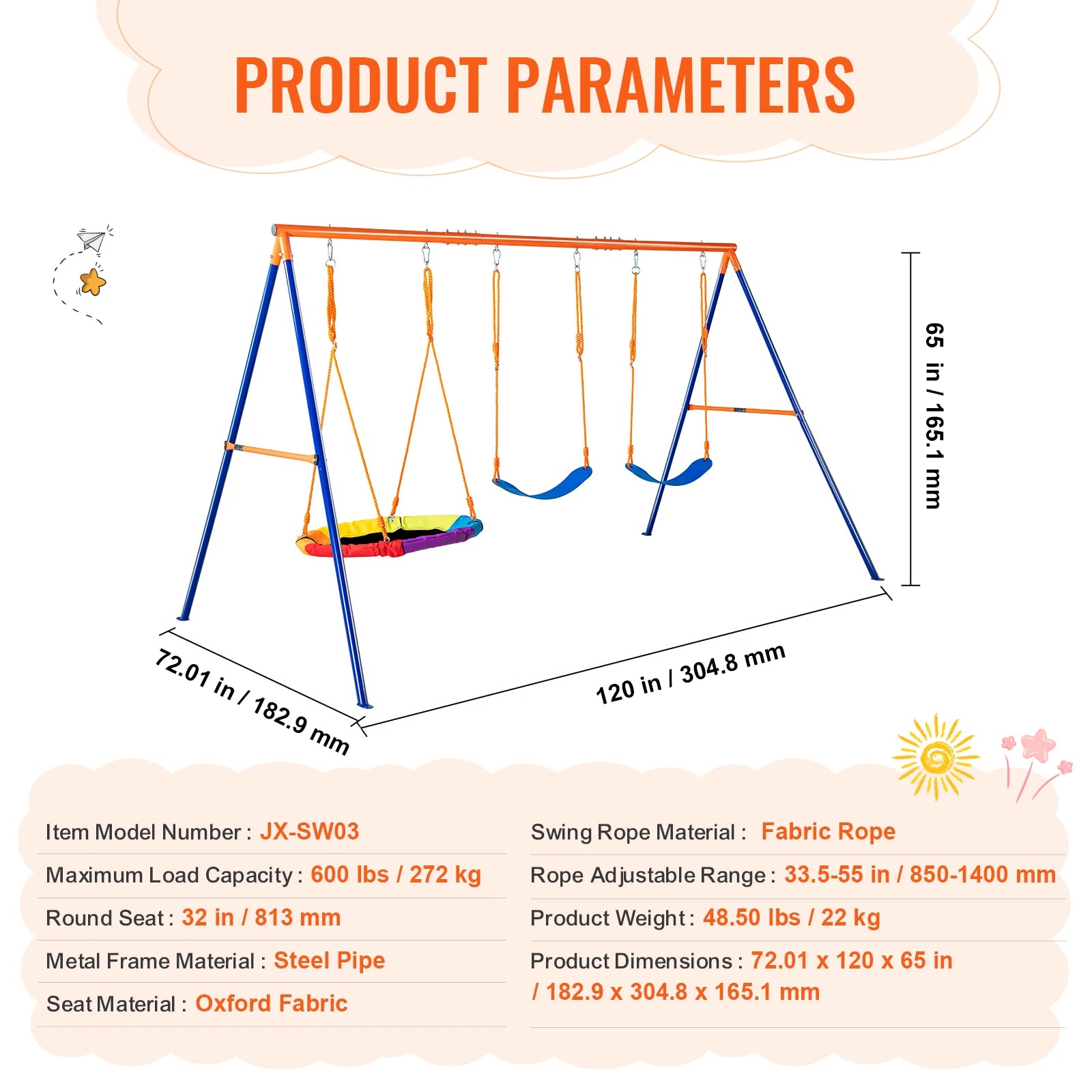 - Interchangeable seat design lets you swap in different swings as your children grow, providing versatile swinging experiences without purchasing extra equipment.